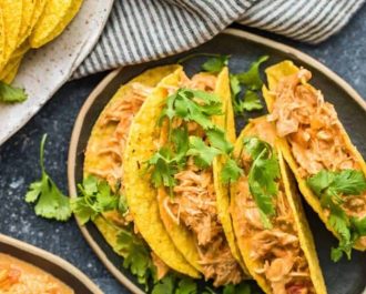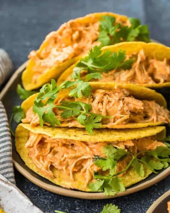 Use the cream cheese salsa chicken as you please. Make tacos, nachos, sandwiches, or serve with rice or pasta. To make tacos, simply scoop the salsa chicken into warmed taco shells, then add additional toppings if you like!