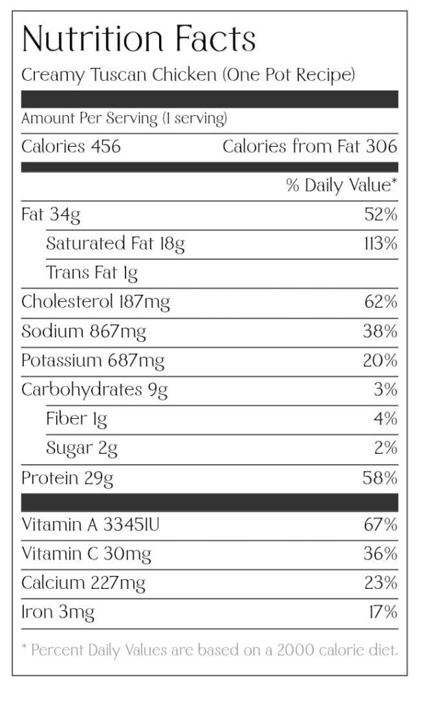 Creamy Tuscan Chicken (One Pot Recipe)